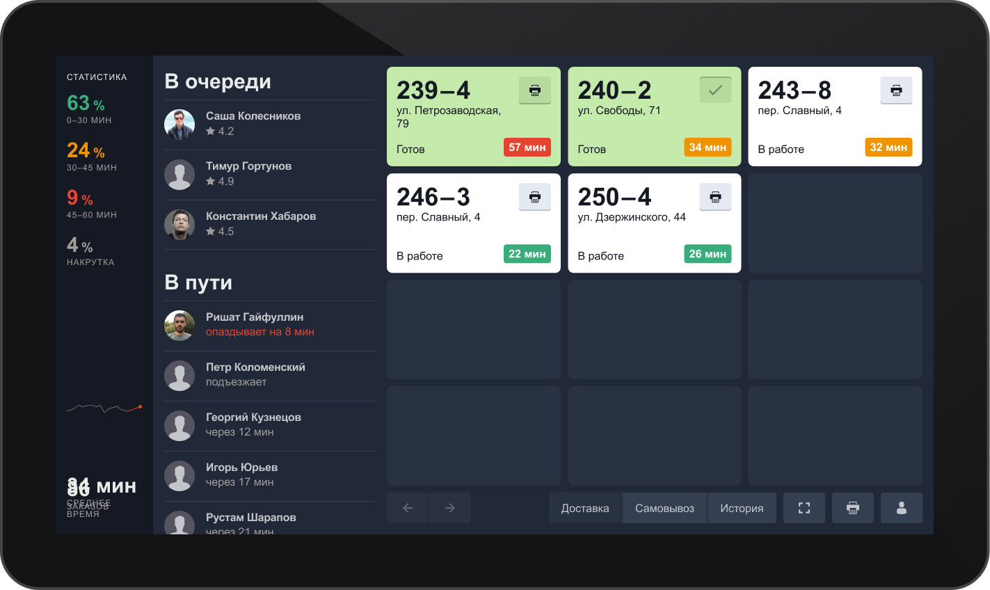 Таким образом, сотрудники пиццерии не отвлекаются на прием заказов доставки (заказы на доставку поступают из сайта, мобильного приложения или контакт-центра через Додо ИС на кухню пиццерии автоматически).