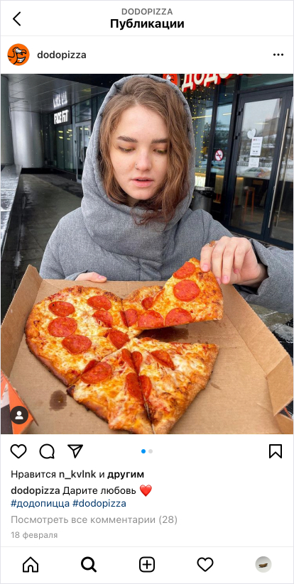 С первой доставкой клиенты получают в подарок фирменный магнит, который напоминает о «Додо Пицце» и приглашает заказывать снова.